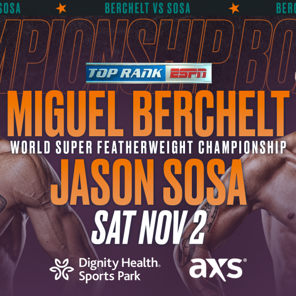 CARSON, Calif. (Sept. 27, 2019) —Tickets for WBC super featherweight world champion Miguel Berchelt’s title defense against former world champion Jason Sosa, Nov. 2 at Dignity Health Sports Park, are on...